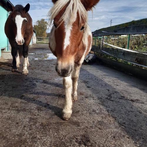 Zwirbel ist 2018 geboren, irgendwo in Irland. Über sein Leben bevor er zu Ganymed kam wissen wir nichts. Er kam als Begleiter von Tao zu uns. Die beiden hatten sich in der Auffangstation in Irland angefreundet und Tao war in einem dermassen instabilen Zustand, dass Zwirbel ihn begleiten sollte. Als Zwirbel bei uns ankam, war er verfilzt und seine Hufe in einem katastrophalen Zustand. Aber vor allem hatte er keine Manieren und führte sich auf wie ein ganz grosser ungezähmter Hengst. Zum Glück war er so klein! Mittlerweile hat Zwirbel gelernt, dass man auch nett sein kann und ist ein absolutes Traumpony geworden. Er hat ein grosses Selbstvertrauen, ist für jeden Spass zu haben, und geniesst gemeinsam mit Freund Tao das Rennen, Spielen und entspannt sein als kleinster Vertreter der Ganymed Herde.